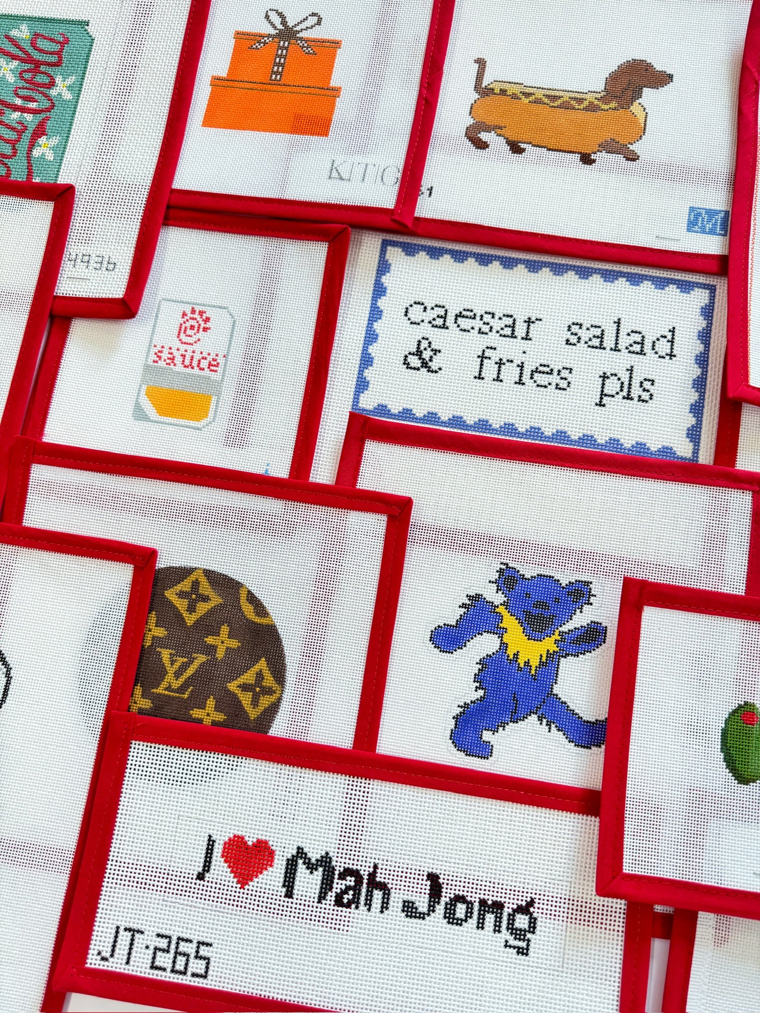 As the founder of The Red Thread Atelier, I'm always on the hunt for the latest and greatest in needlepoint. Here you can discover an ever-evolving selection of one-of-a-kind canvases, stylish accessories, and hidden gems that have caught my eye.